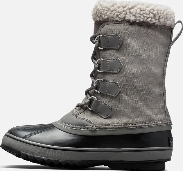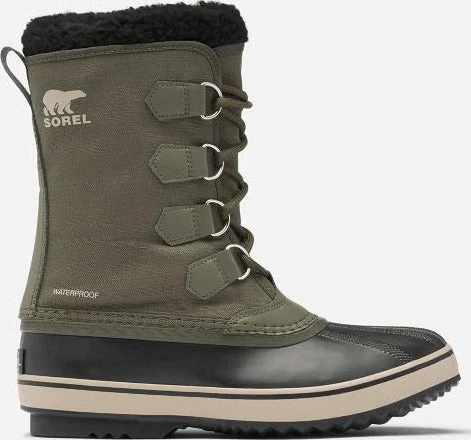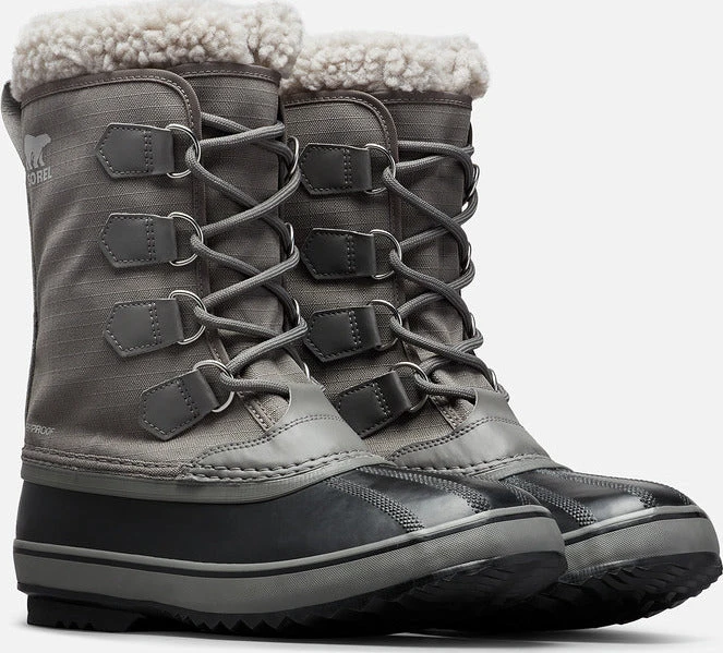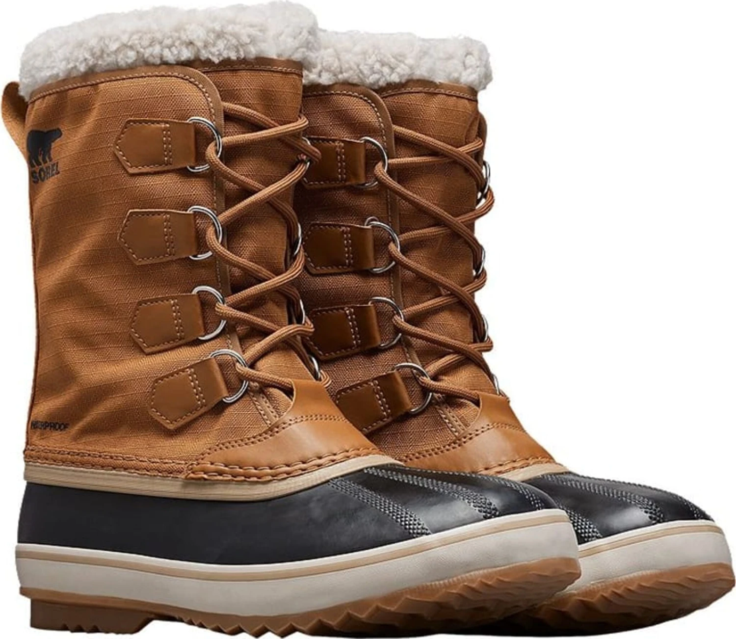 Sorel’s 1964 PAC Nylon Waterproof Boots for men are timeless classics that will keep you warm and dry from zero to 32 below. The removable 9mm recycled felt inner boot with Sherpa pile snow cuff is sure to keep your feet warm. A waterproof nylon upper keeps them dry and hearkens to the original sixties look. Seam-sealed construction locks water out and dry warmth in. A handcrafted waterproof vulcanized rubber outsole with herringbone traction crushes obstacles and stabilizes you on winter’s uncertain footing, even at extreme temperatures. The bonded felt midsole increases the thermal layer between your foot and the frost. Full-length lacing and metal rivets lock your foot inside and the cold outside.