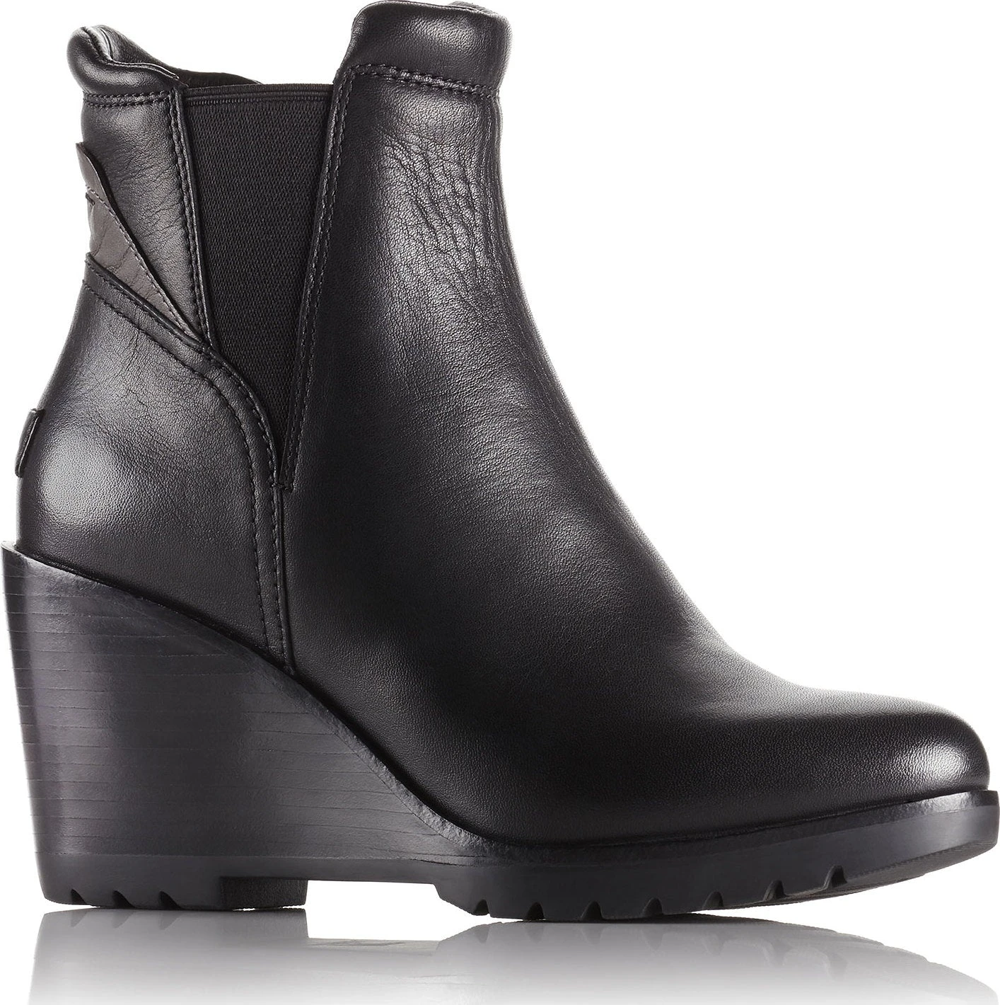 Sorel created the women’s AFTER HOURS CHELSEA Boot to provide refined waterproof protection and distinct traction, allowing you to rock this sleek wedge in any weather. The upper is constructed with a weatherproof mixture of rich leather or supple suede (depending on the model). Comfortable stretch cutouts make putting-on this boot easy. The interior is lined with a blend of leather and microfiber for comfort. The cushioned wedge midsole has an EVA footbed for premium support. The heel is leather wrapped for style. A molded rubber outsole grips slippery sidewalks and hallways across Canada.