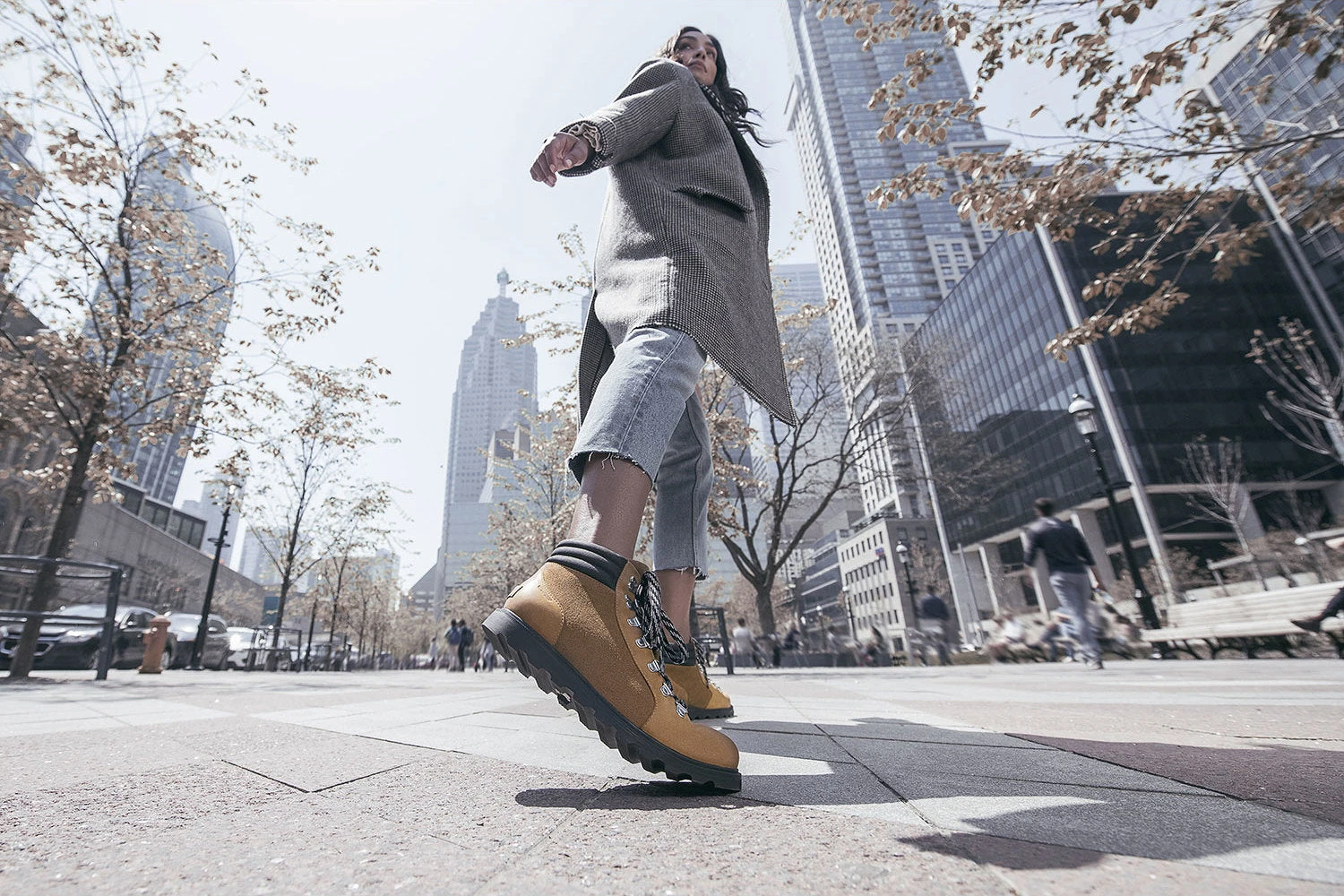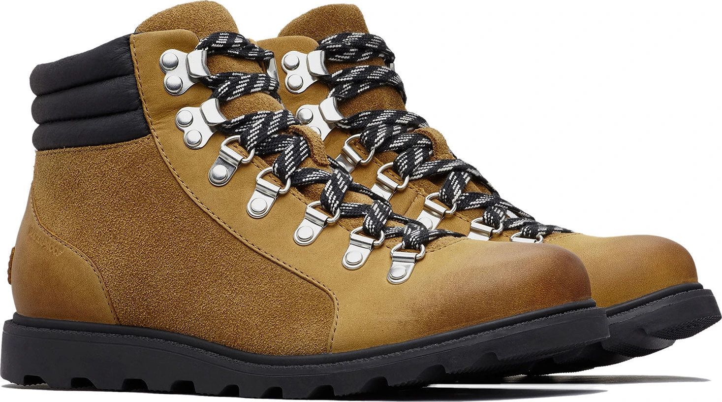 The women’s AINSLEY CONQUEST is a waterproof suede-leather boot in a rain-defying hiker design. This rain-ready SOREL has seam-sealed construction backing its waterproof leather/suede upper, preventing rain and snow penetration. Molded rubber along the midsole and outsole delivers the proper blend of support, traction, and durability. The interior of the boot features a lining blend of pigskin and canvas for comfort. A removable molded EVA footbed offers plenty of support. Hiking-inspired details include strong lacing in metal D-rings and a padded ribbed collar.