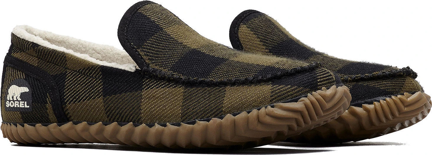 The men’s DUDE MOC TARTAN TEXTILE Slipper delivers premium comfort, warmth, and traction for your cold kitchen tiles and snowy front steps. This premium slipper features a soft, flexible, and durable textile upper in a tartan print. Inside, SOREL lined it with an amazingly warm wool/acrylic blend. The combination of a faux fur lining and footbed topcover a heat your feet with-or-without socks. The removable molded EVA provides support for walking hardwood staircases. The slipper is also equipped with a premium vulcanized rubber outsole, which has a herringbone tread for improved traction on wet surfaces.