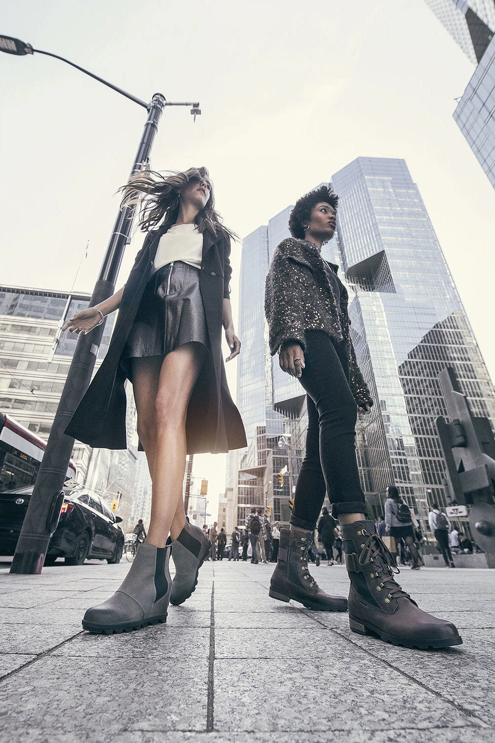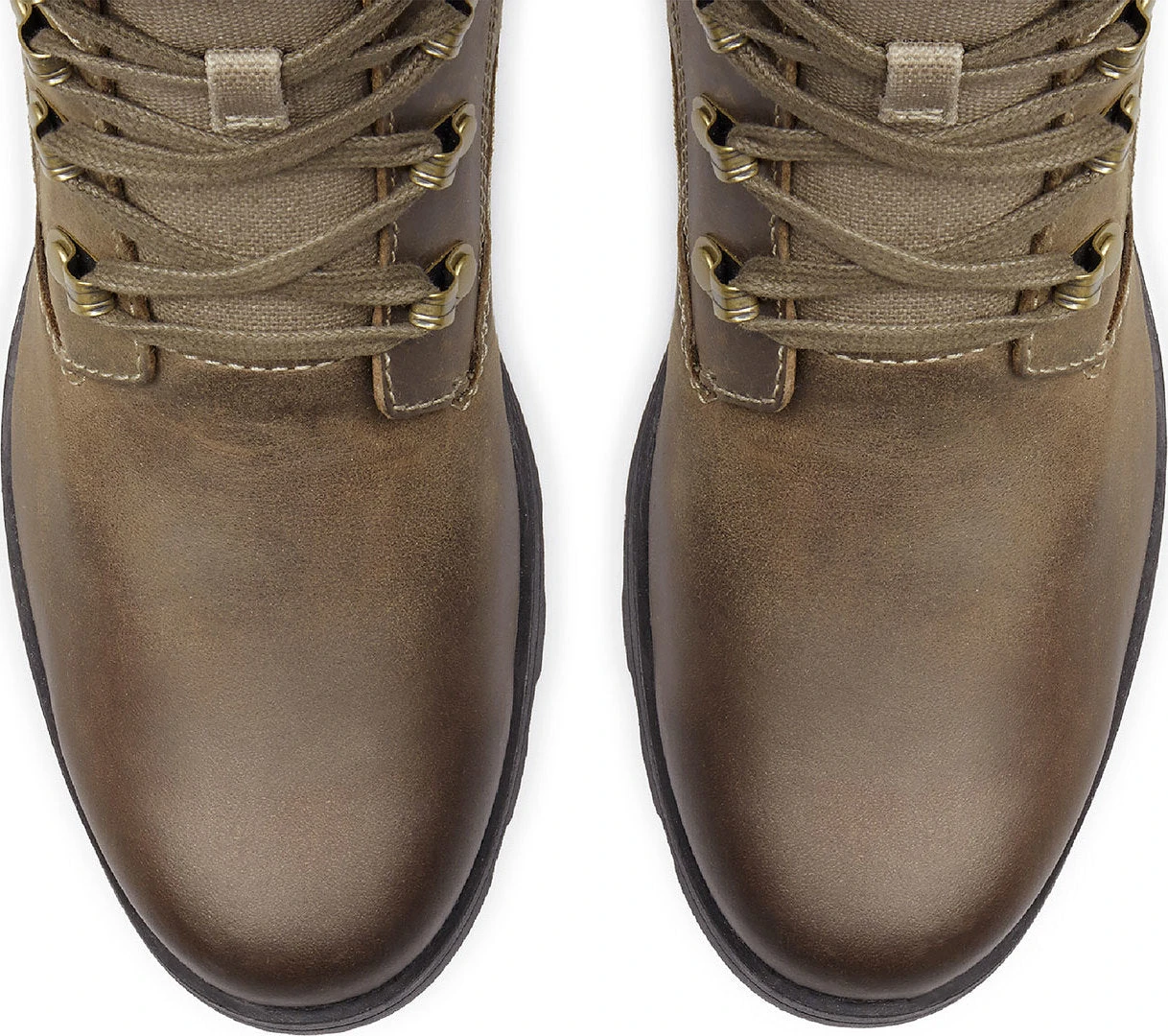- Leather/coated canvas upper