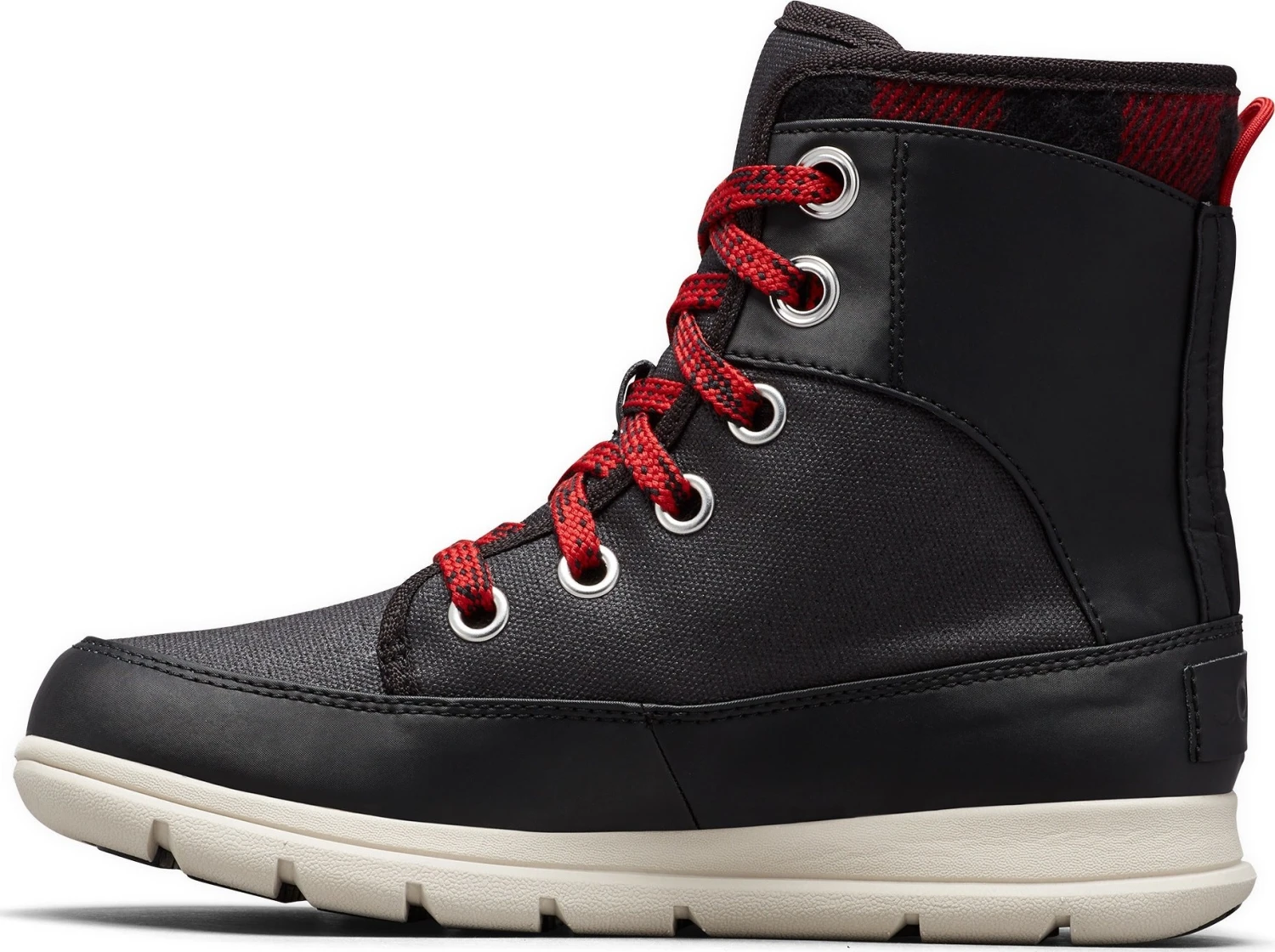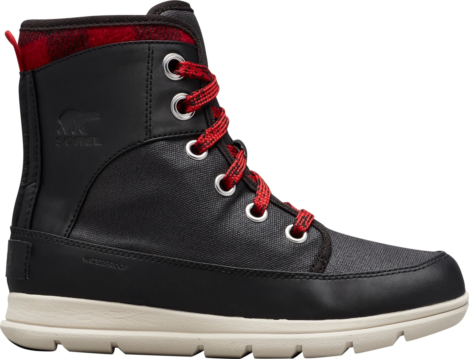The Sorel women’s EXPLORER 1964 Winter Boots are the perfect urban winter footwear that won’t weigh you down. Featuring retro two-tone coloring, waterproof-breathable membrane construction, and 100g insulation, you’ll be sure to look effortlessly chic while staying solidly warm and dry. Waterproof coated canvas and synthetic leather uppers ensure your feet remain comfy in wet snow conditions. The removable molded PU-like EVA footbed offers some extra support. Durable off-color (white) outsoles with rubber pods grip icy surfaces.