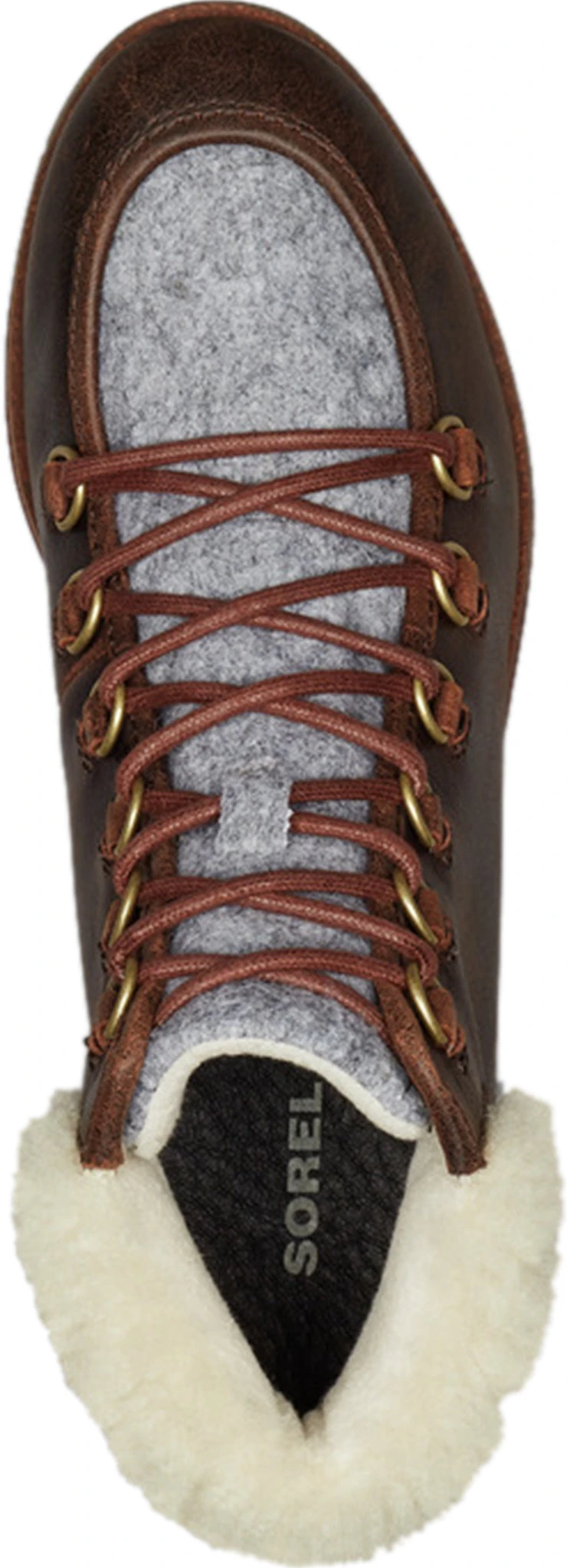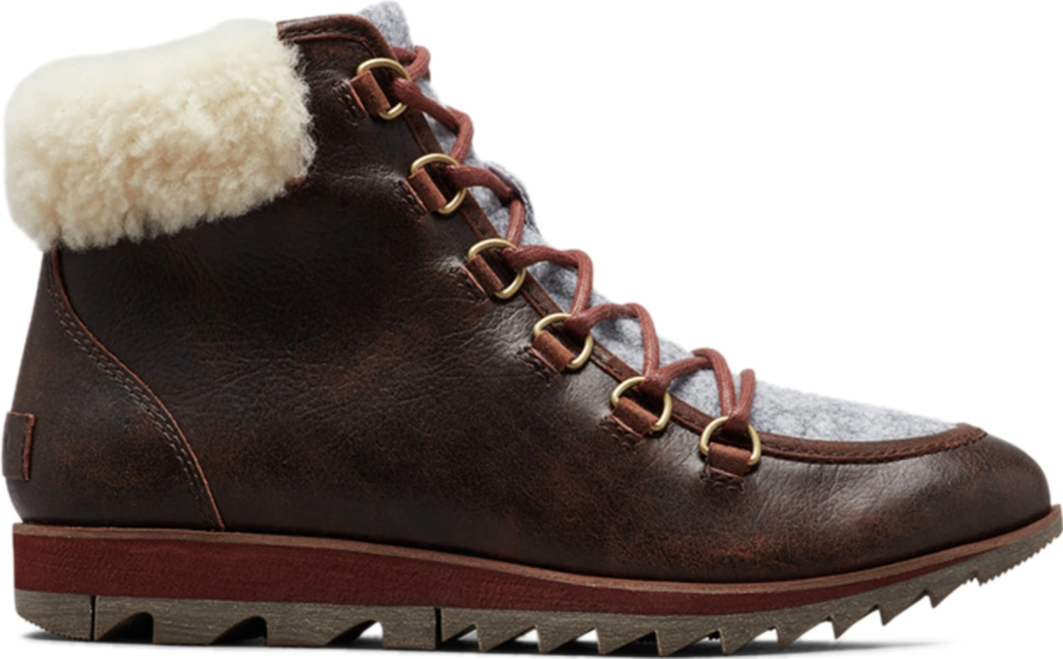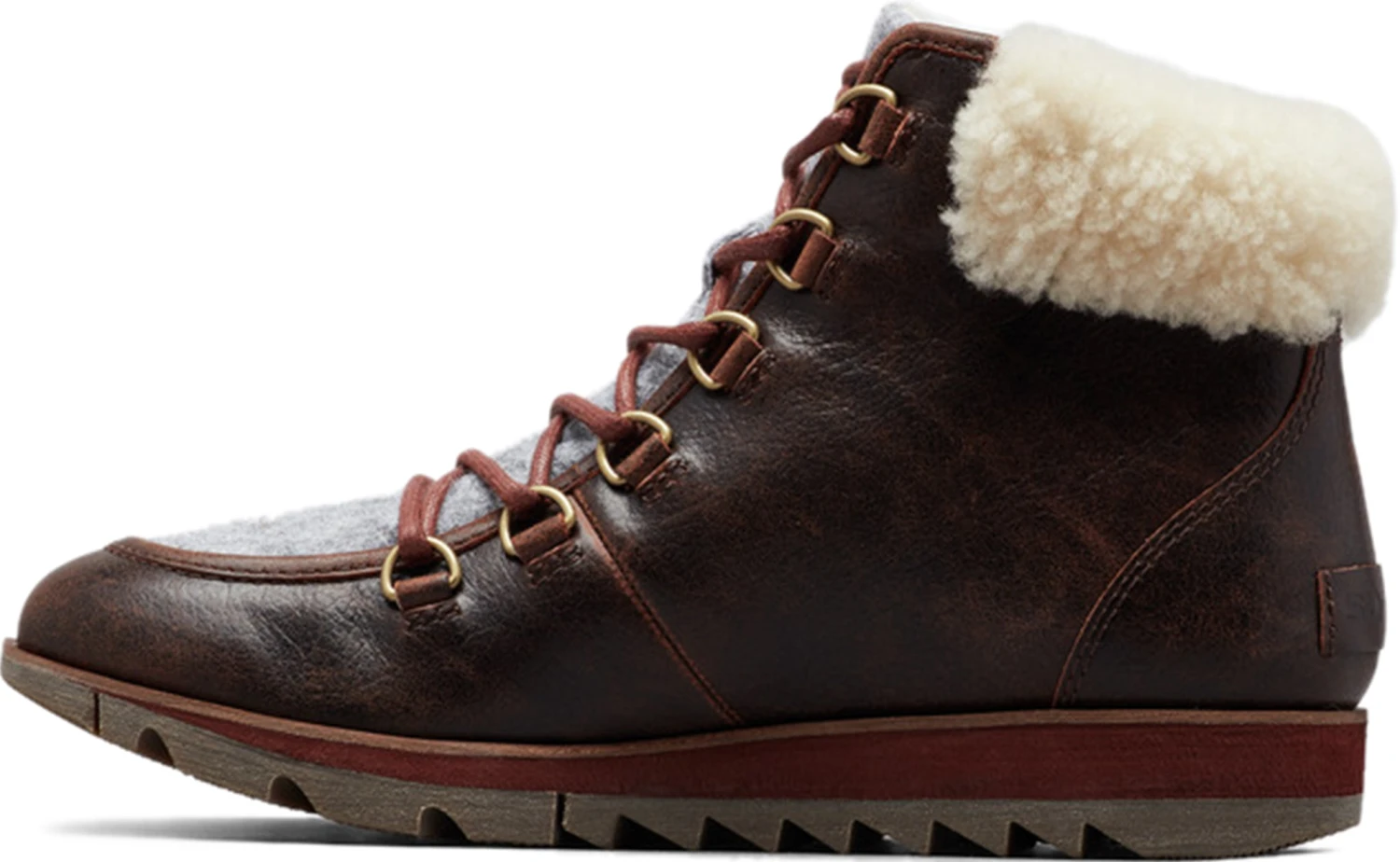 • Upper: Waterproof full grain leather and felt combination. Genuine shearling collar. Canvas lining