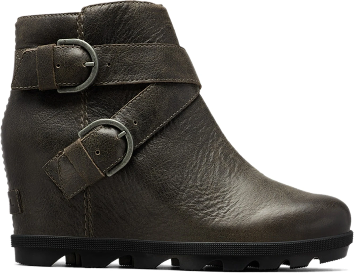 Criss-cross buckles made this wedge ankle bootie a must-have for the season. Featuring waterproof full-grain leather for city showers, a side zipper for easy on-and-off, the design is in the details. Walk hours and hours in the comfortable EVA footbed and stand tall with the grippy rubber sole.