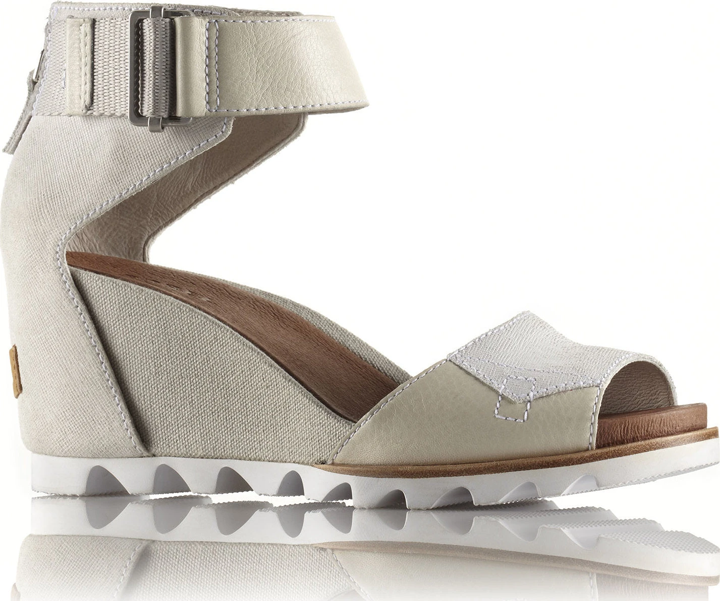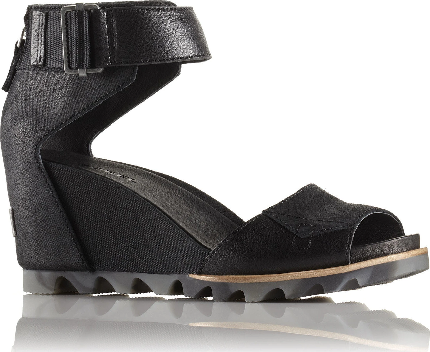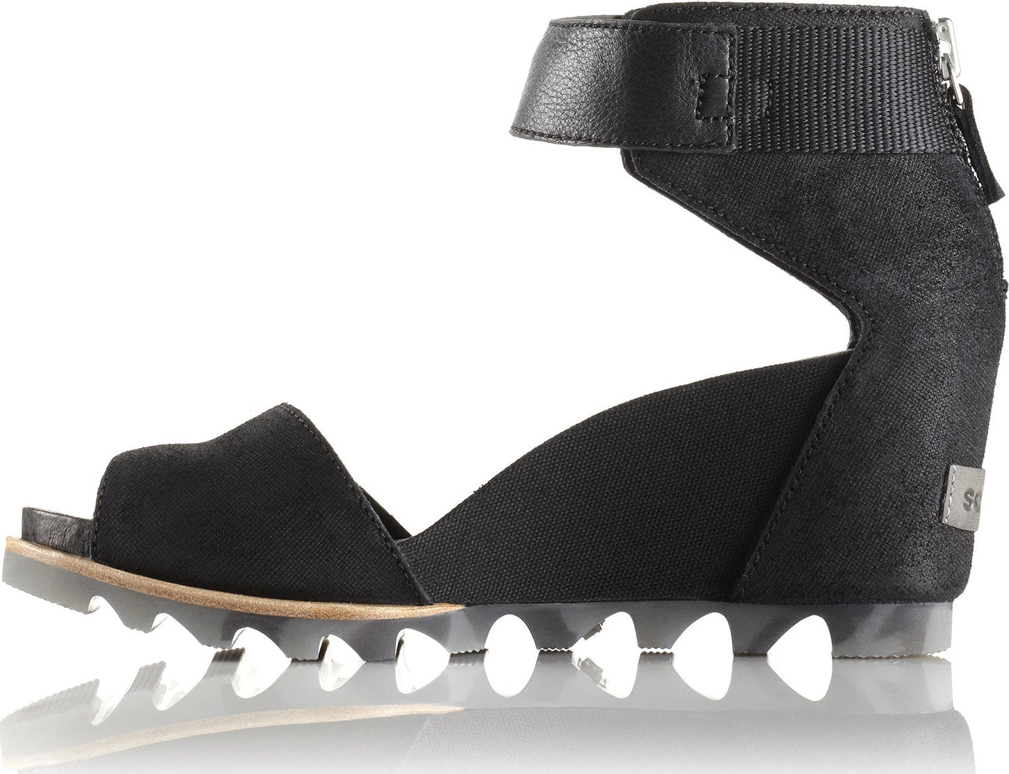 Architectural style, a dual-toned leather and suede Upper rests atop the famously wearable Joan wedge. Deconstructed lines with half zip back and ankle belt with hardware add edge, while spongy rubber Outsole lets you glide.