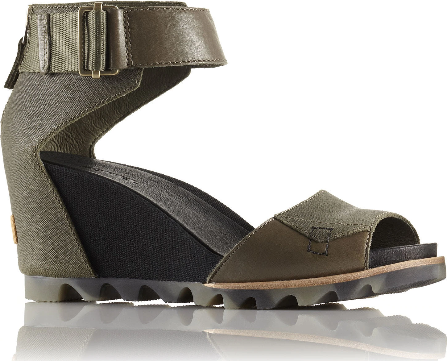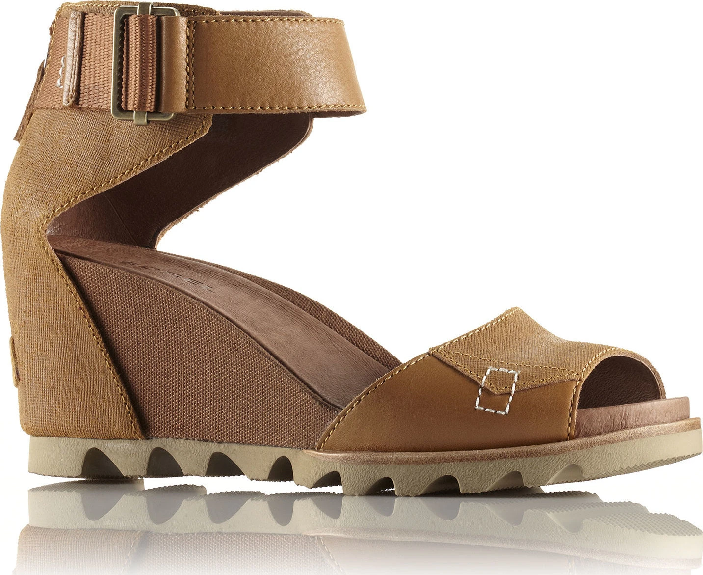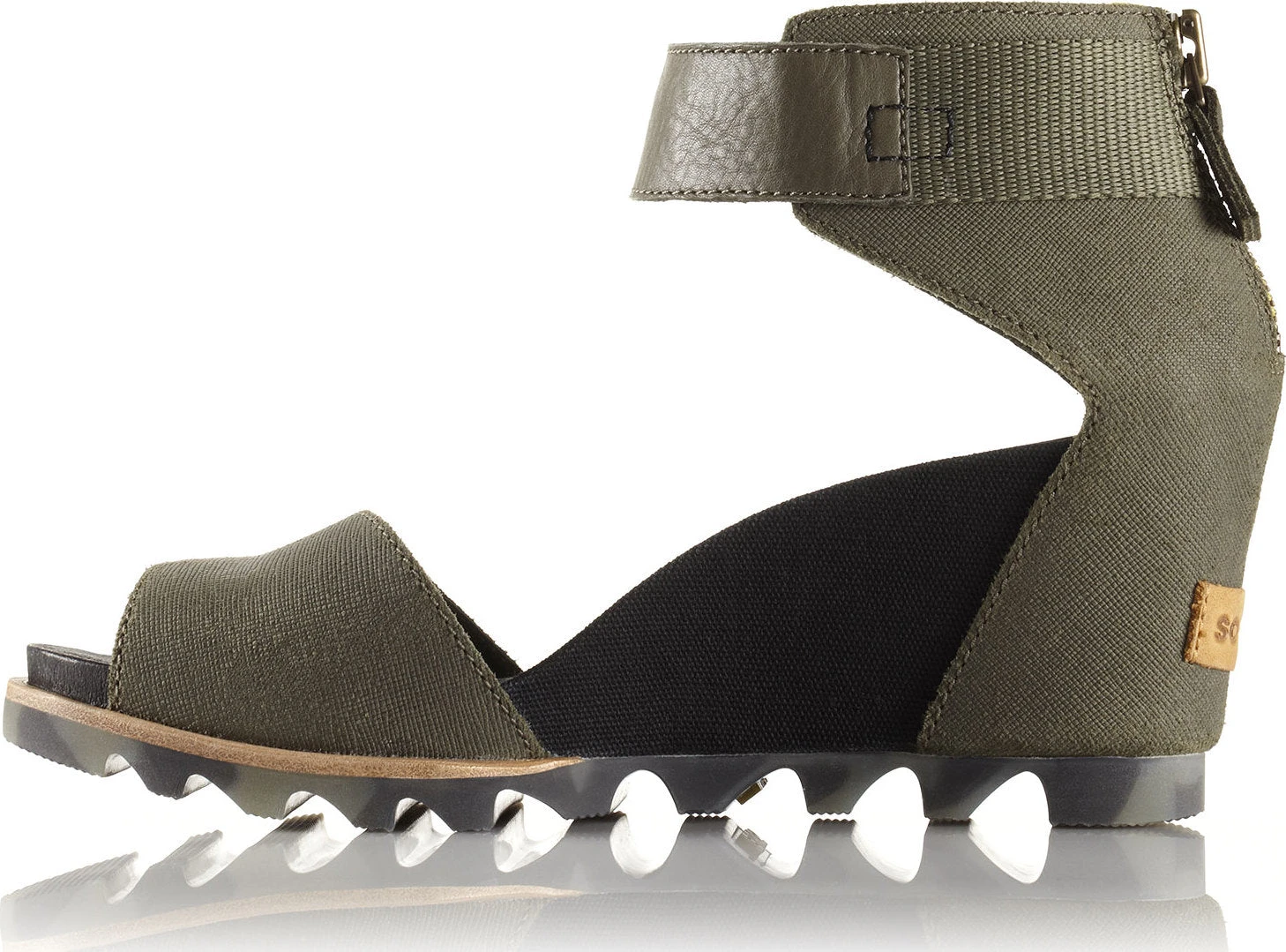 Architectural style, a dual-toned leather and suede Upper rests atop the famously wearable Joan wedge. Deconstructed lines with half zip back and ankle belt with hardware add edge, while spongy rubber Outsole lets you glide.