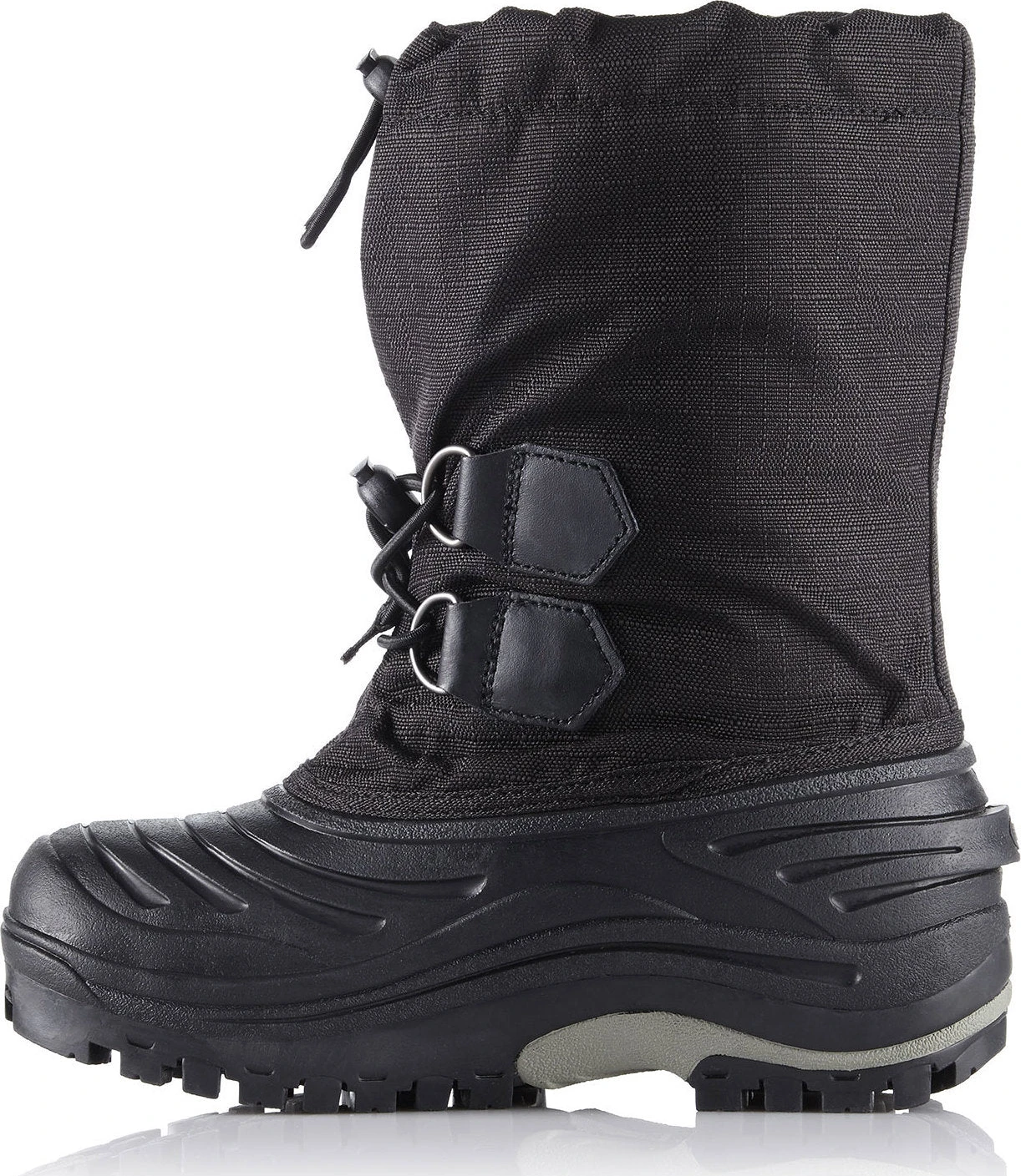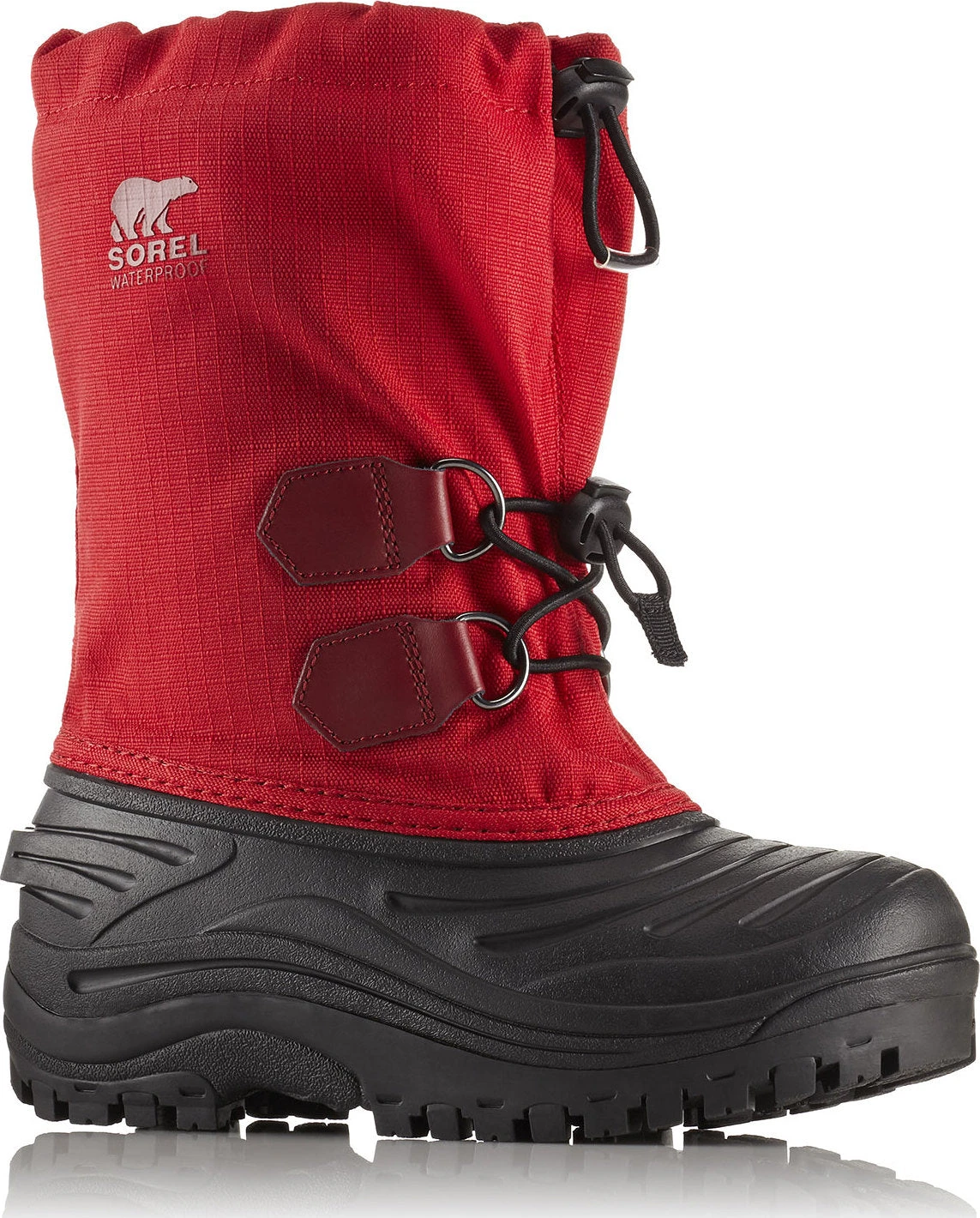 Founded in 1962, Sorel is one of the most well known Canadian companies. Through the years, we saw them evolve in terms of style, but what we notice the most is their consistancy towards the quality of the craftsmanship and the materials used in their products. The thing that makes them stand out from the crowd is their use of vulcanized rubber soles – which are more resistant and efficient in the harsh Canadian winter. You can’t go wrong with Sorel.|-|Une protection extraordinaire pour les enfants les plus aventureux, ces bottes robustes sont fin prêtes à affronter les conditions hivernales. Conçues pour garder la neige à l’extérieur et la chaleur à l’intérieur, elles offrent une Tige imperméable en textile PU synthétique, une confortable doublure en laine polaire avec une Isolation contre le froid et une coquille imperméable en caoutchouc thermoplastique avec une semelle adhérente.