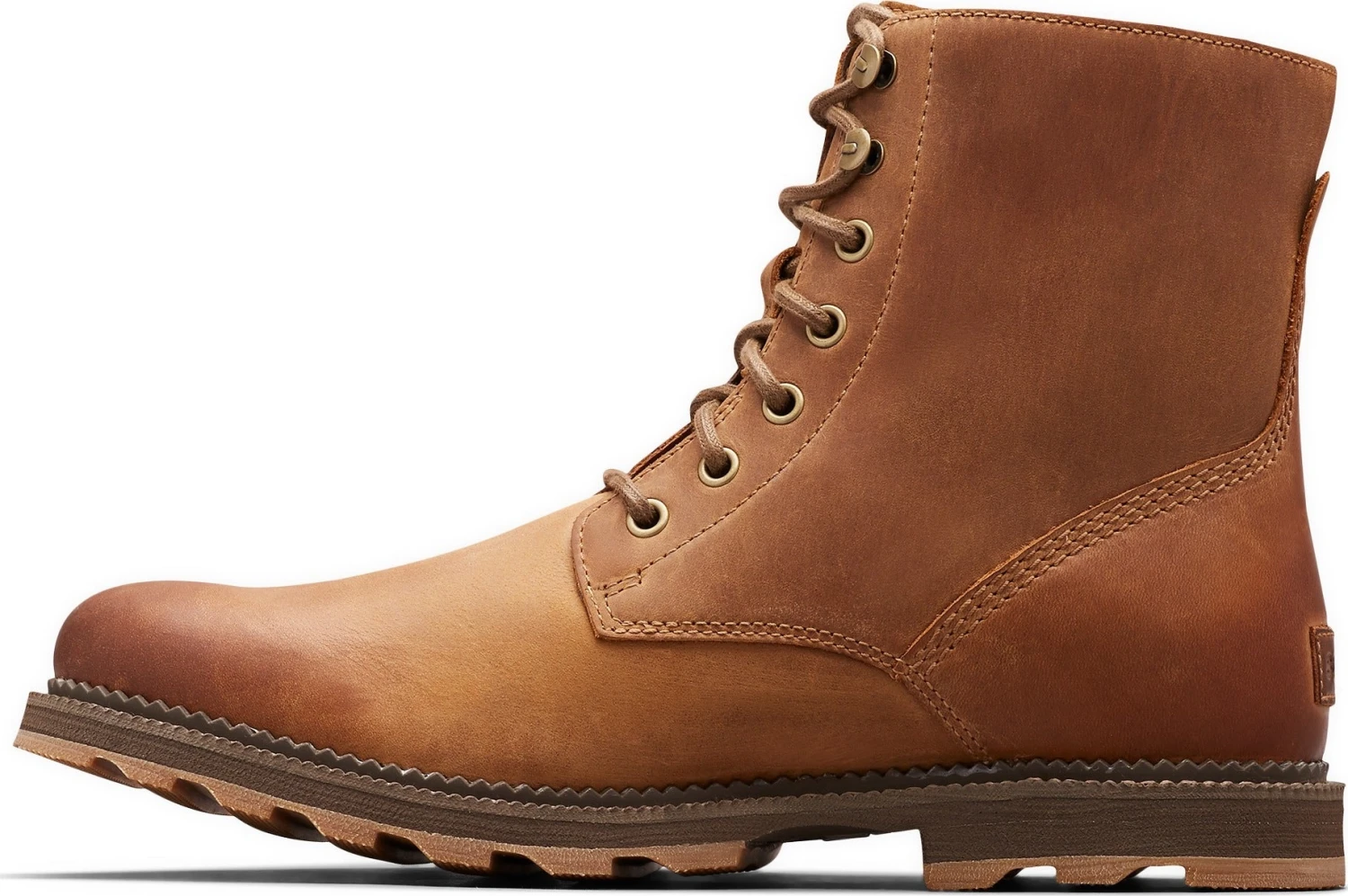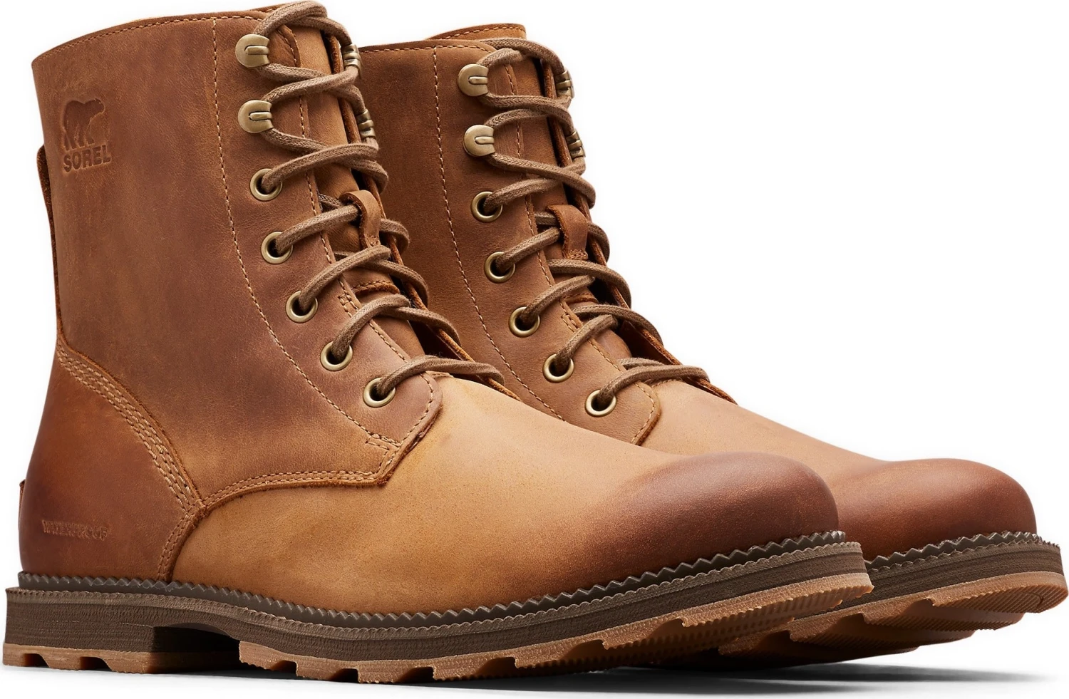 Form meets function in the handsome Men’s MADSON 6 Boot from Sorel. Thoughtful design details are paired with the comfort that comes from the fully waterproof full-grain leather upper, and seam-sealed waterproof construction. The removable moulded PU-like EVA footbed provides support for those long treks. The moulded all-weather rubber outsole is built tough to take on difficult winter weather. Combat boot construction and design are paired with an urban style that looks good with any outfit.