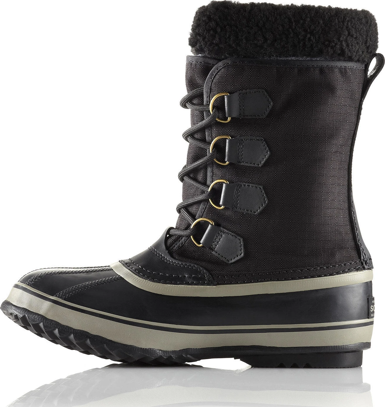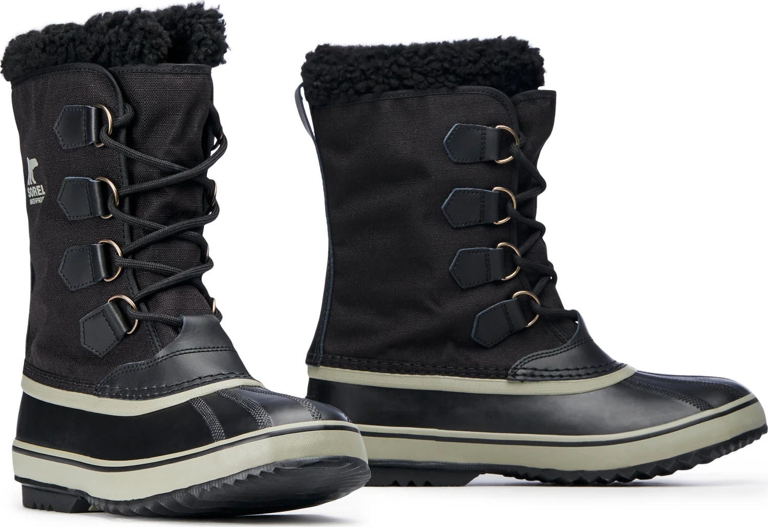 Sorel’s 1964 PAC Nylon Waterproof Boots for men are timeless classics that will keep you warm and dry from zero to 32 below. The removable 9mm recycled felt inner boot with Sherpa pile snow cuff is sure to keep your feet warm. A waterproof nylon upper keeps them dry and hearkens to the original sixties look. Seam-sealed construction locks water out and dry warmth in. A handcrafted waterproof vulcanized rubber outsole with herringbone traction crushes obstacles and stabilizes you on winter’s uncertain footing, even at extreme temperatures. The bonded felt midsole increases the thermal layer between your foot and the frost. Full-length lacing and metal rivets lock your foot inside and the cold outside.
