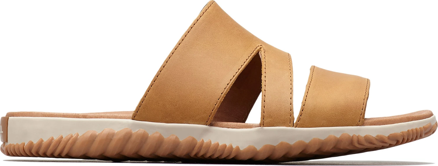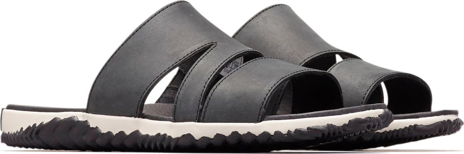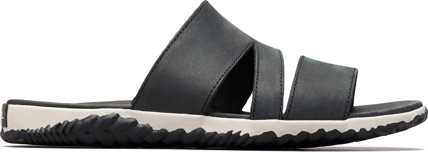 SOREL designed their women’s OUT ‘N ABOUT PLUS Synthetic Lining Slide in a laidback style, blending the grip of a duck boot with the comfort of a leather sandal. Uppers in full grain leather with supple pigskin linings allow you to walk the sand, boardwalk, and town in all-day comfort. These immensely grippy slide-on sandals also feature handcrafted vulcanized rubber outsoles. Herringbone wet traction patterning sticks to slick cement.