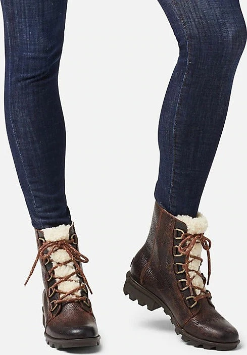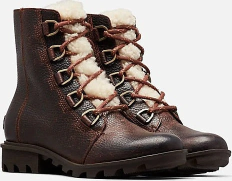 • Upper: Available in full-grain leather and genuine shearling combination. Microfleece lining. Seam-sealed waterproof construction
