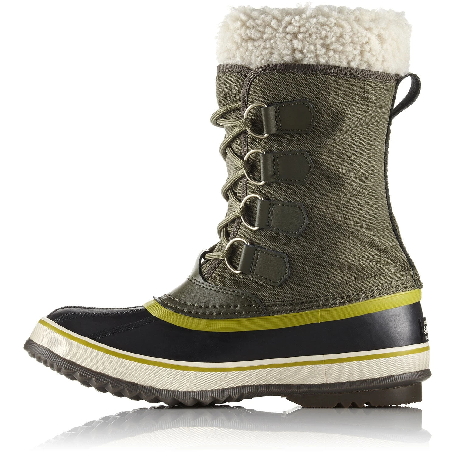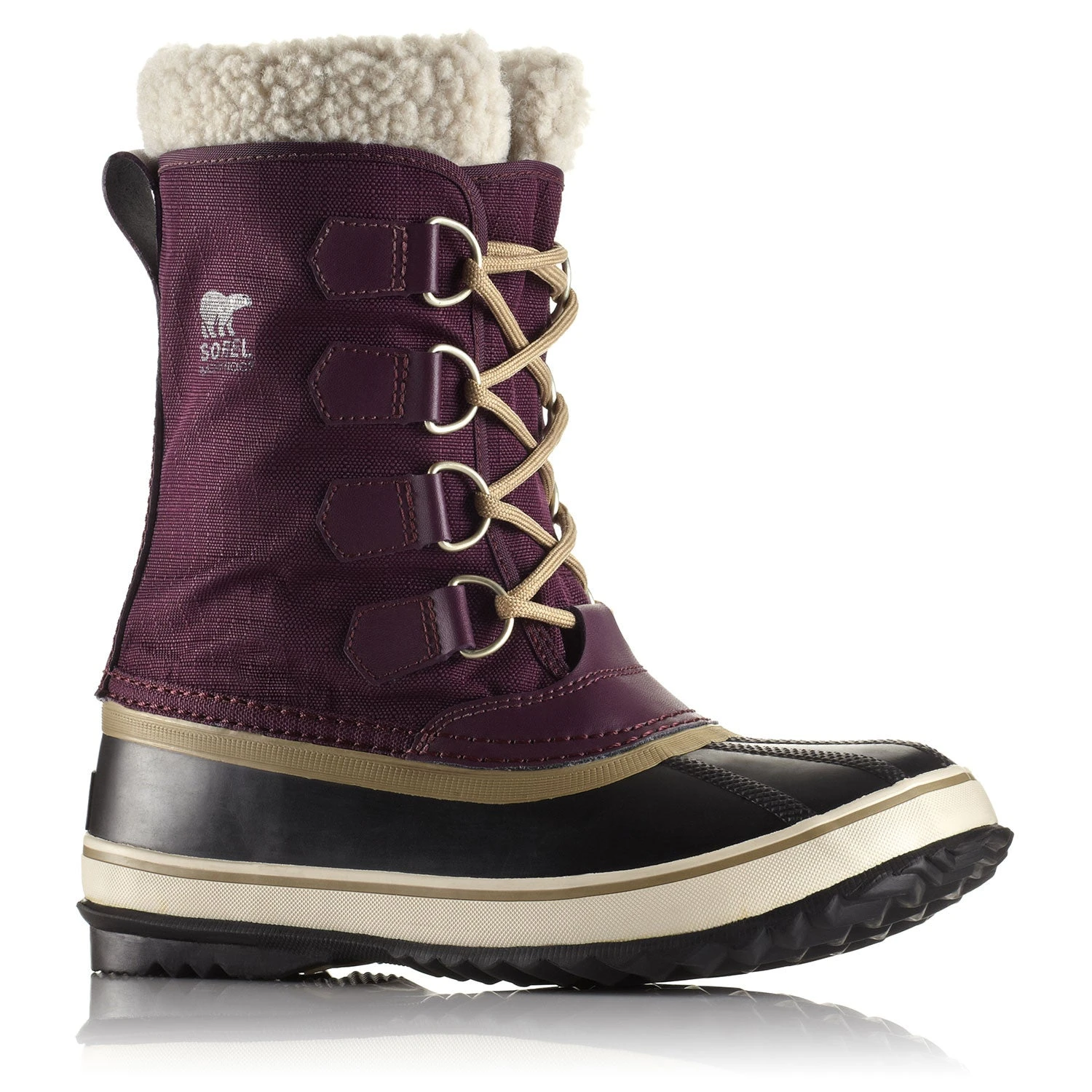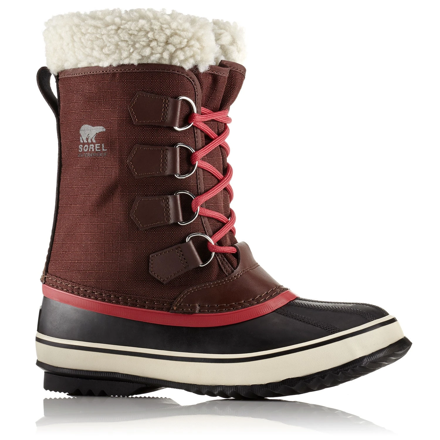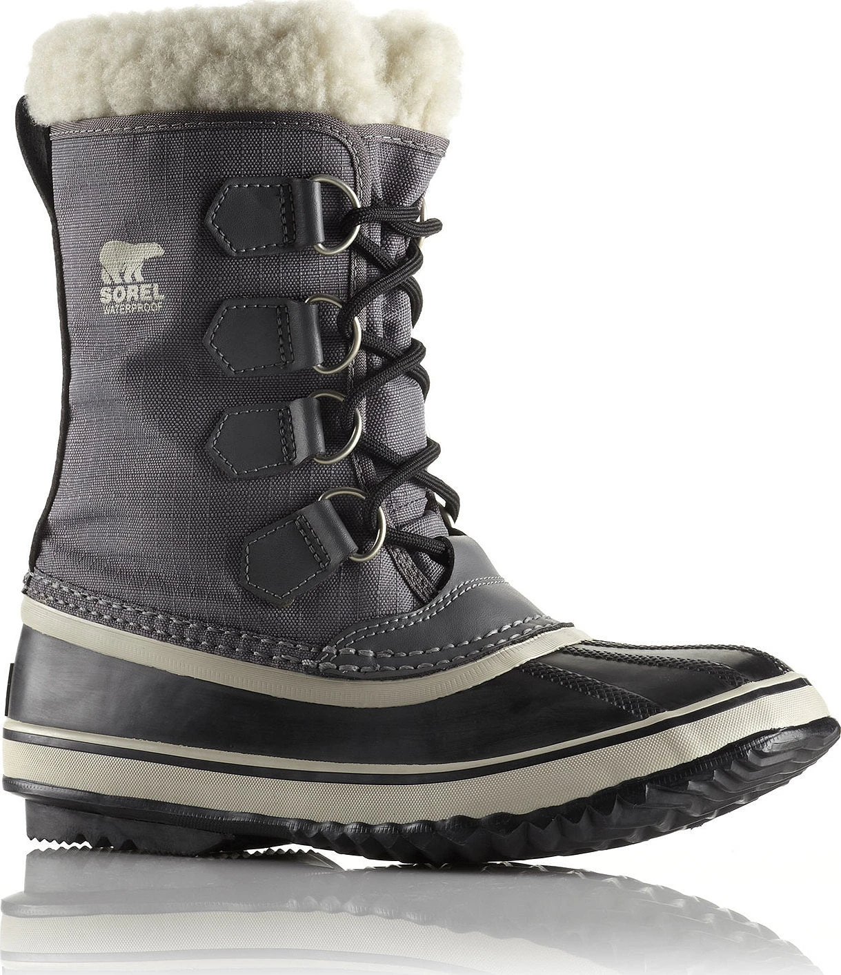 The women’s WINTER CARNIVAL BOOT is an archetypal SOREL design, made for versatility and style during your December outings to school or Holiday markets. This boot has a waterproof vulcanized rubber shell, protecting your toes from slushy puddles and falling snow. The outsole is also handcrafted vulcanized rubber with a grippy herringbone tread. An upper constructed from seam-sealed waterproof nylon ensures total protection. Keeping the bottom of your foot warm is a 2.5mm thick bonded felt midsole plug.