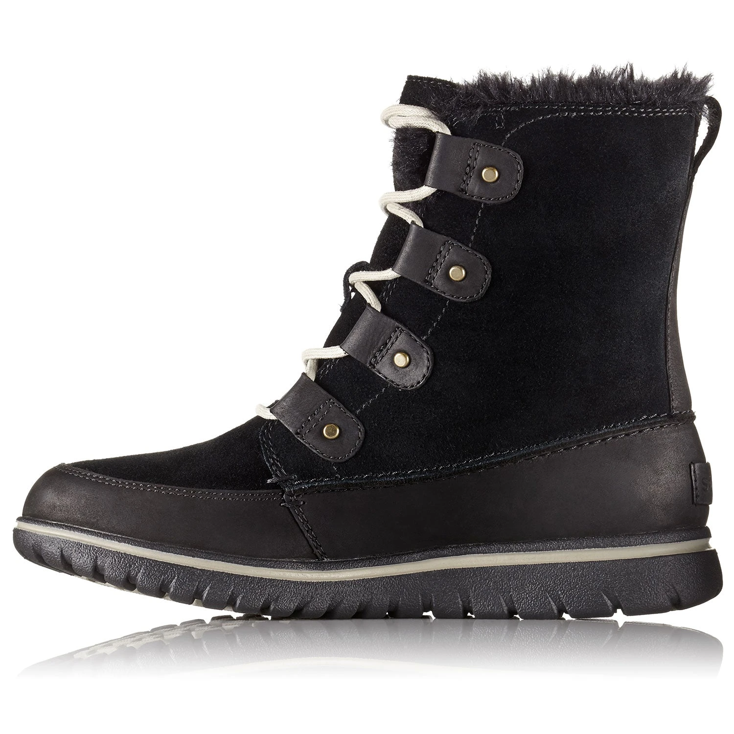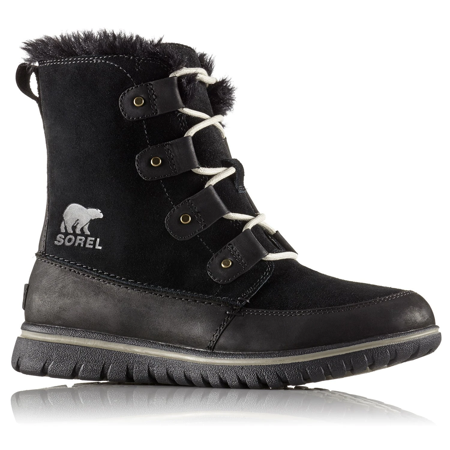 Sporty, weatherproof, comfortable, and functional. The Sorel Cozy Joan sneaker-boot blends all these traits and also has a stylish silhouette that you can rock anywhere. Sorel designed this boot with a suede and leather waterproof upper outlined in a thermal enhancing faux fur collar. The EVA grade outsole is armed with grippy rubber traction pods, suitable for use on wet sidewalks and slick hallways. 100g of insulation pads against cold while a super-warm microfleece lining makes wearing the boot a comfortable experience, with or without socks.