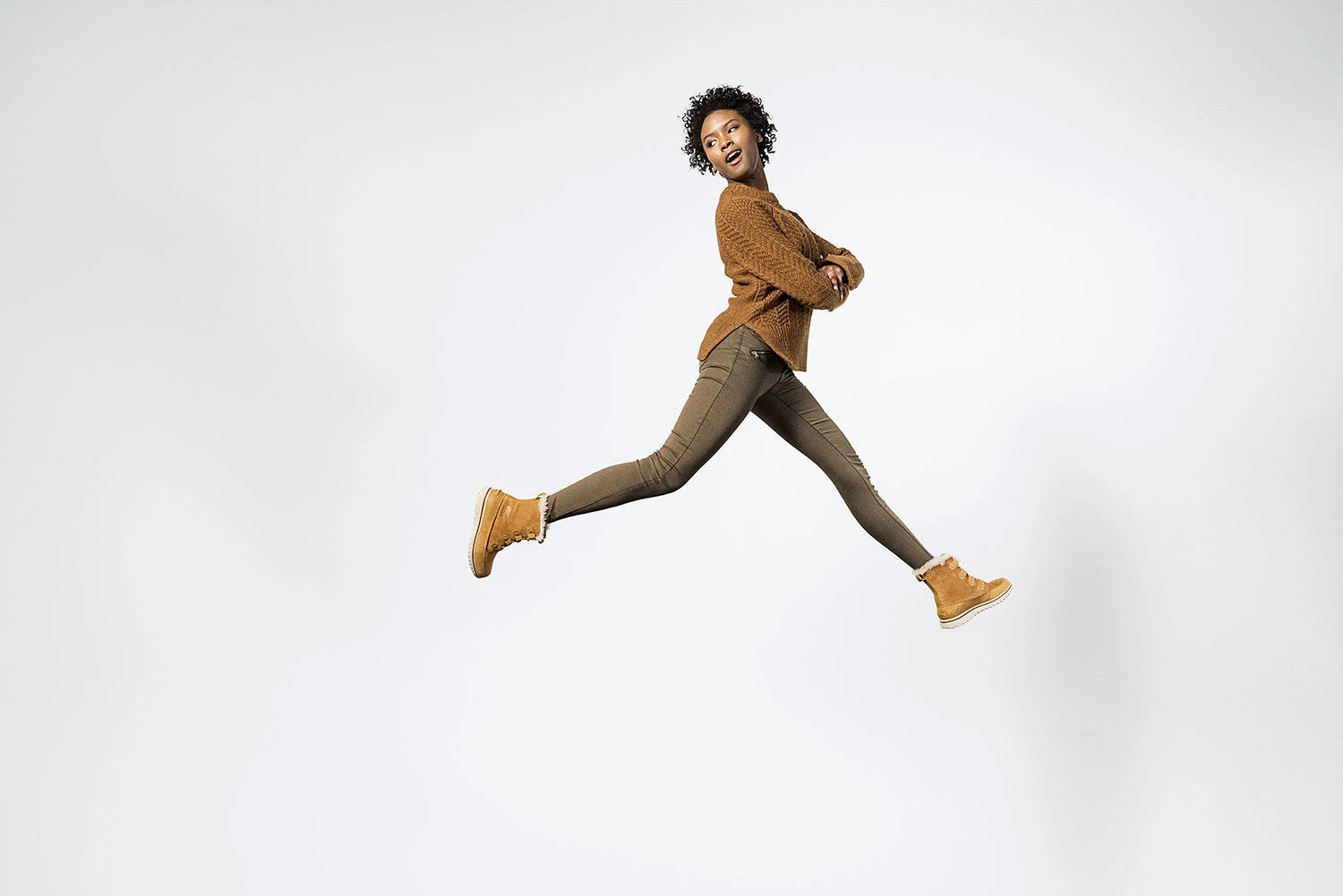 Des bottes imperméables, confortables, fonctionnelles, au style sportif! Les Sorel Cory Joan combinent le look d’une chaussure de sport et la chaleur d’une botte d’hiver que vous pourrez porter n’importe où. Elles sont faites de suède et de cuir imperméable agrémentés d’une doublure en fourrure artificielle isolante. La semelle d’usure en EVA possède également des crampons en caoutchouc adhérents sur les trottoirs humides et les planchers bien cirés. Ses 100 grammes d’isolant empêchent le froid d’atteindre vos pieds et la doublure en micropolaire est chaude et confortable, que vous portiez les bottes avec ou sans chaussettes.